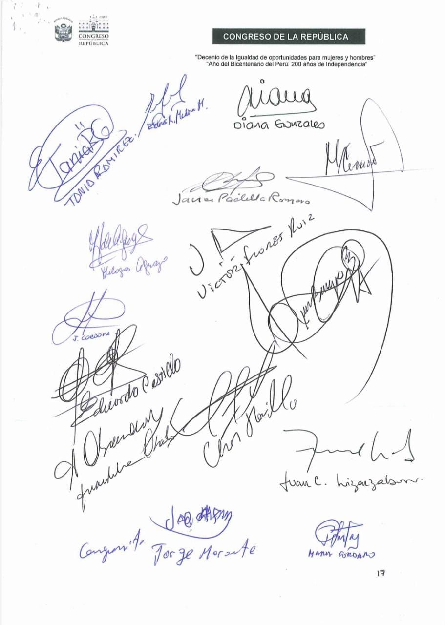 Lista de congresistas que firmaron moción de vacancia/Fuente Congreso de la República.